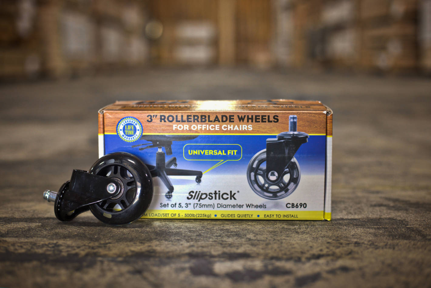 *SET OF 5 PREMIUM ROLLERBLADE WHEELS – This set of 5 Rollerblade casters will support up to 500lbs (225 Kg) (100lbs – 45kg per wheel) and are covered by Slipstick’s Lifetime free replacement warranty.