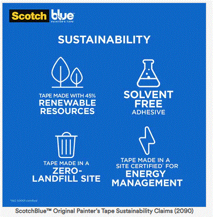 *Sustainability: made from 45% renewable resources; solvent-free adhesive; tape made in a zero-landfill site certified for energy management (Iso 50001 Certified), core made with 70% post-consumer waste