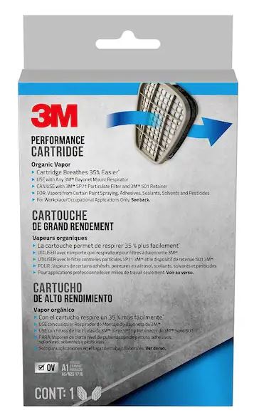 3M™ Gas/Vapor Cartridges are designed to balance breathability and long service life. Gas and vapor cartridges use carbon particles to adsorb contaminants, filtering the air that you breathe. 3M™ has designed our cartridges to be easy to breathe through and long lasting by optimizing the layers and depth of the carbon bed, geometry of the cartridge body, and carbon particle size.