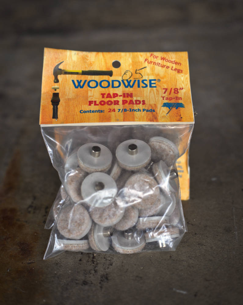 Made from long-lasting, quality felt and nickel-plated grommets. For wooden furniture legs. Made with beige felt and nickel-plated grommets. Package of 24. Installs easily and quickly by hammering the pad into the bottom of furniture legs.