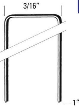 Bostitch Staples, 20 gauge, 3/16" Crown X 1" Leg,