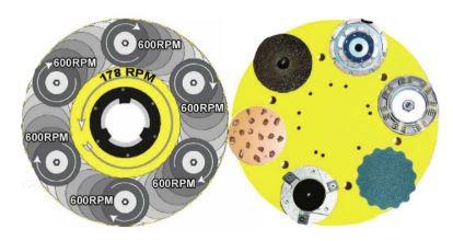 * Discs rotate at 600 rpm on your standard 178 rpm buffer, 1200 rpm on 300 rpm buffers.