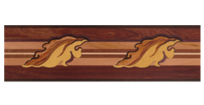 Wood border and corner shown in American Cherry, Birdseye Maple, Jarrah, Purpleheart, Tigerwood, Wenge, Yellowheart