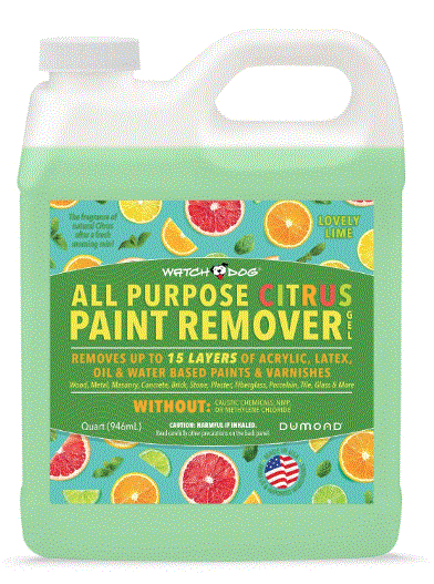 Watch Dog All Purpose Citrus Paint Remover Gel works on most interior and exterior surfaces: brick, cast iron, cement, concrete, copper, enamel, granite, marble, metal, plaster, slate, stone, terrazzo, terra cotta, tin, wood, and more!