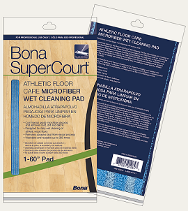 Bona SuperCourt® Athletic Floor Care Microfiber Wet Cleaning Pads are designed for daily maintenance of athletic wood floors. The blue cleaning pad is used for daily tacking after the floor has been dust mopped for complete floor care.