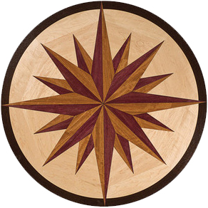 Wood medallion shown in Brazilian Cherry, Maple, Purpleheart, Wenge
