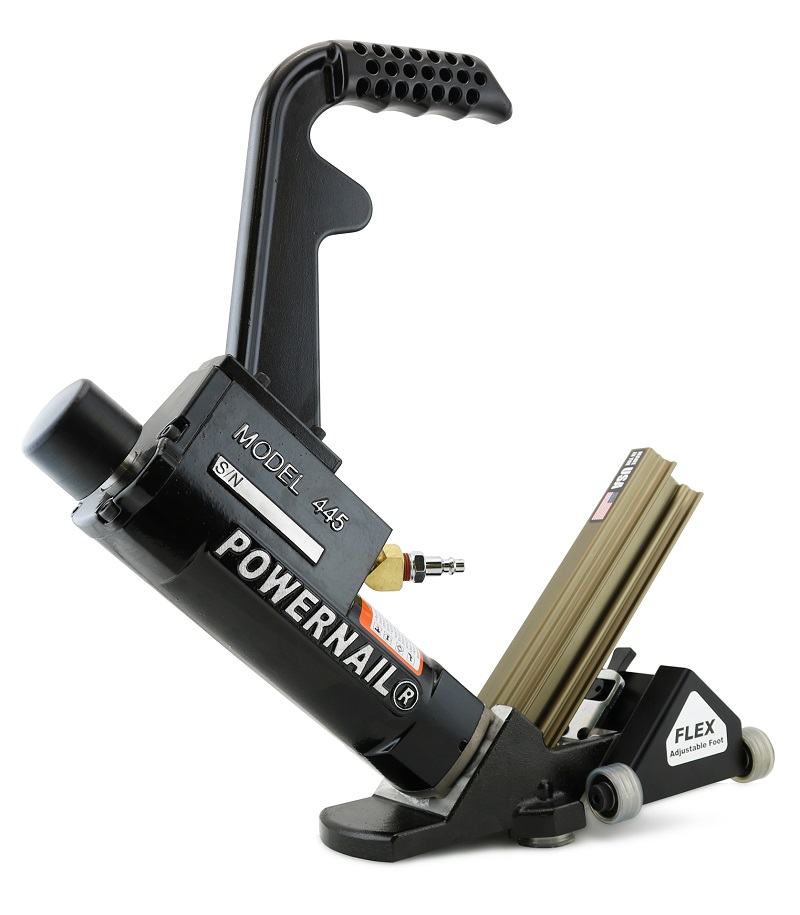 When comfort and control are a priority, you can depend on the Powernail Model 445 Power Roller. Outfitted with the new Tri-Glide Power Roller, this cleat nailer now delivers speed, comfort and accuracy while protecting delicate edges and finishes. Power meets control with the all new model 445 Power Roller.