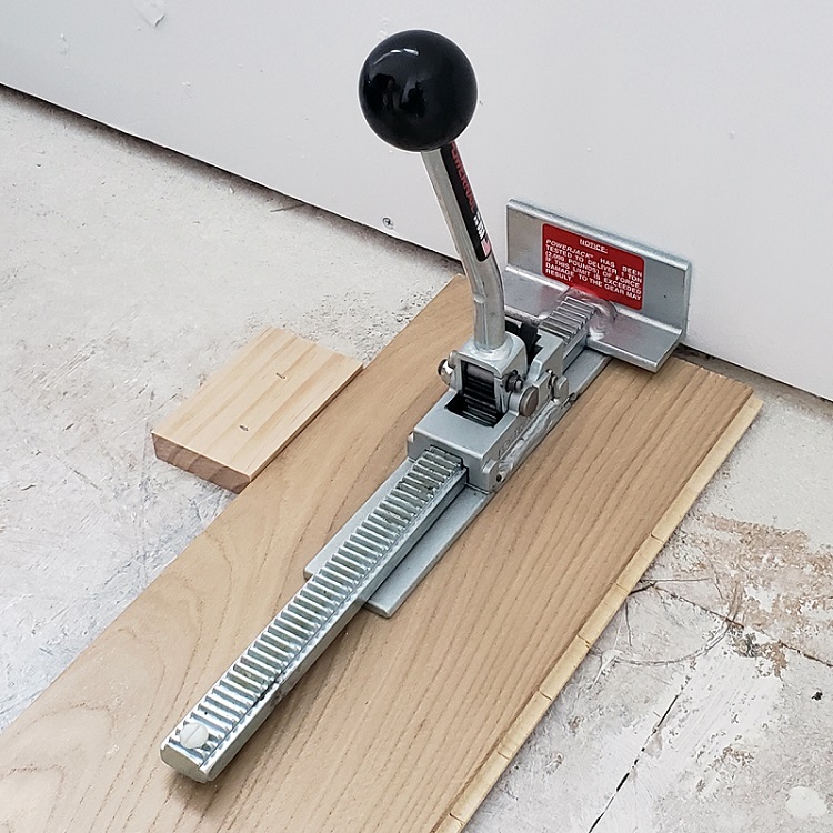 The Powerjack® Model 100 and Model 200 flooring jacks are quality tools designed for the professional flooring installer. PowerJacks are designed to pull or push tongue & groove flooring strips into place and hold them tightly for hands-free nailing. Powerjacks will work on almost any thickness flooring without damaging the flooring surface. They can be used next to the wall, at stud locations or anywhere else on the floor.