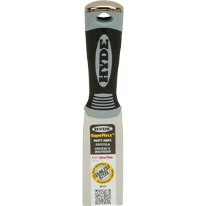 Made specifically for the drywall pro, this rust-resistant stainless steel blade combine a Rockwell hardness that resists dulling and wear with much greater flexibility than other stainless steel tools on the market. A thinner hollow grind profile and flex point give this the flexible feel that many pros prefer for mudding and taping walls. Overmold comfort grip and Hammer Head end for resetting popped nails and screws.