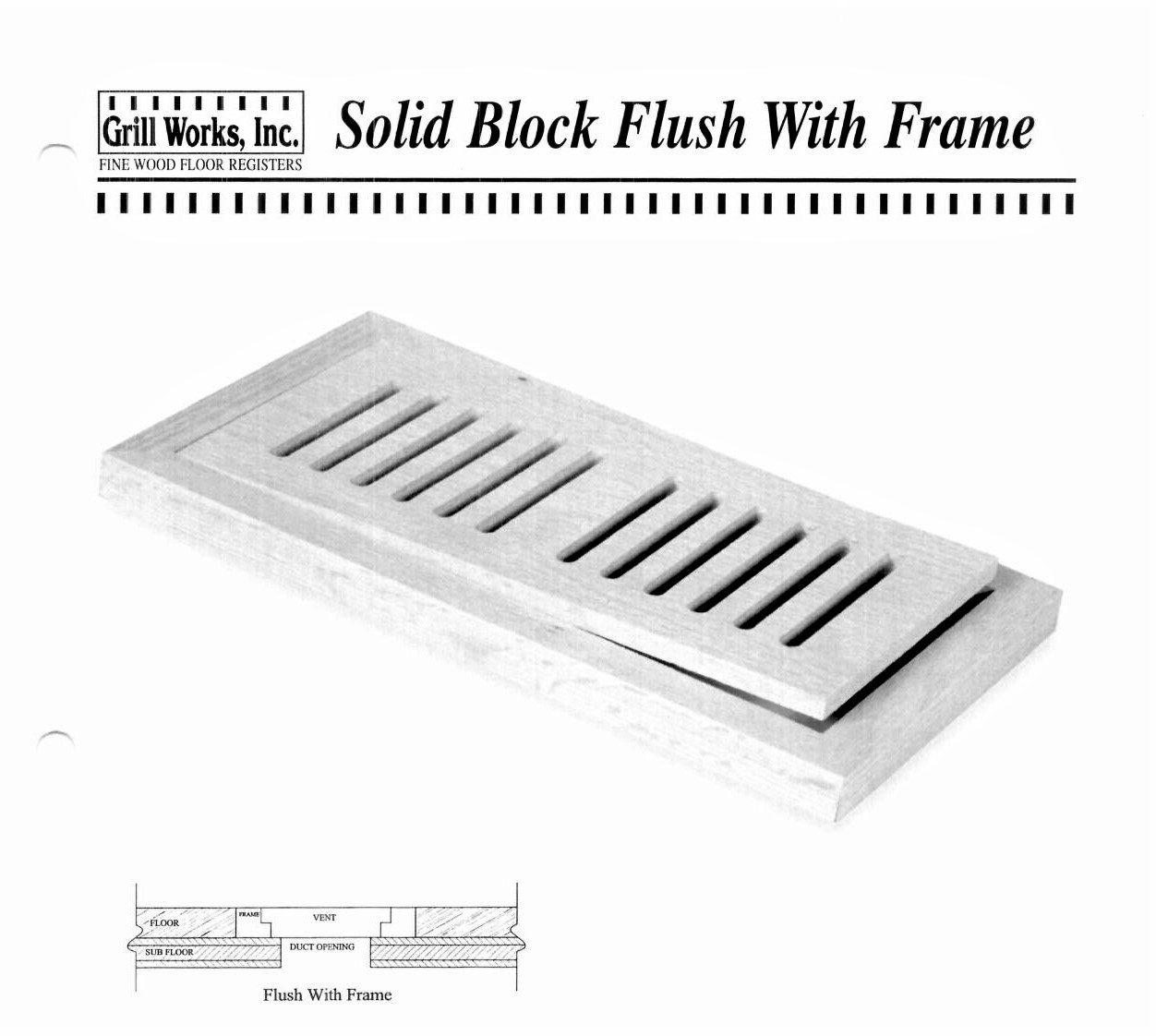 The flush styling is the perfect complement for hardwood floors. Installed on the subfloor, it provides a clean, continuous look. Individually sized to fit within its' frame. Adjustable box damper also avilable.
