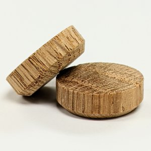 Our premium Red Oak side grain flat head plugs are tapered to ensure a tight fit. They are 1/4" thick and designed to fit flush in furniture and other woodworking applications.