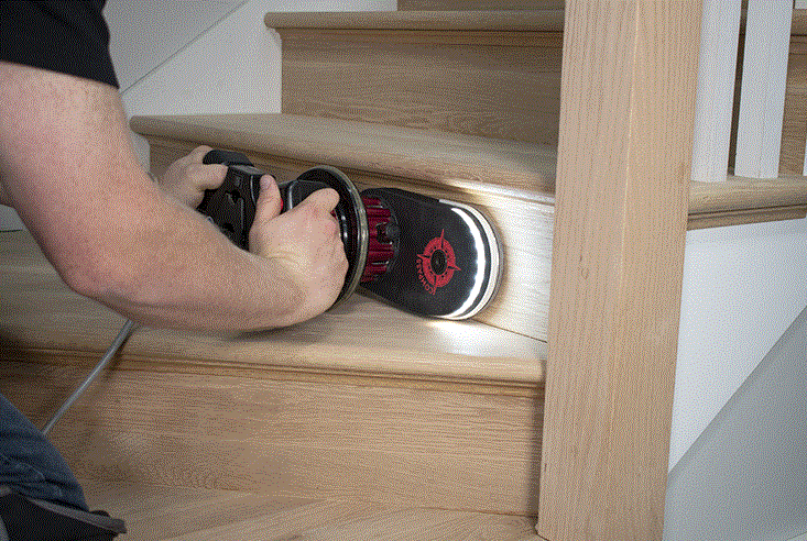 The Compass provides aggressive sanding performance in a uniquely versatile package. The rotating handle, balancing wheel and bottom slip plate deliver unmatched control while sanding stair risers and treads. For floor edging, the low-profile nose, light weight, and premium work light offer high efficiency with reduced operator fatigue.