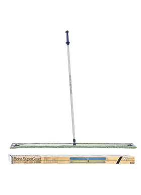 Bona SuperCourt Athletic Floor Care System is designed for daily maintenance of athletic wood floors. Mop base is designed with a flared leading edge to maximize collecting dirt and debris.