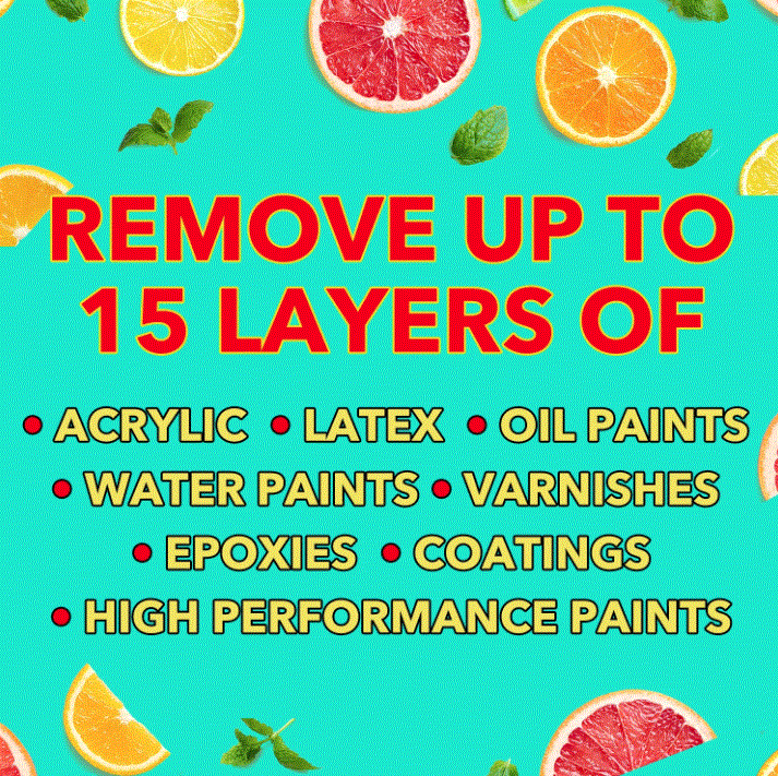Watch Dog All Purpose Citrus Paint Remover Gel works on most interior and exterior surfaces: brick, cast iron, cement, concrete, copper, enamel, granite, marble, metal, plaster, slate, stone, terrazzo, terra cotta, tin, wood, and more!