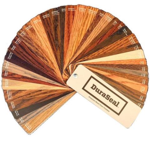 High quality DuraSeal Stain Color Fan Deck, includes all stain colors, red oak shown on one side, and white oak on the other.