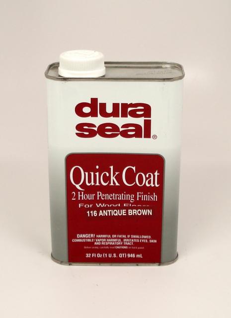 DuraSeal® Quick Coat Penetrating Finish is a semi-transparent stain formulated to seal, color and provide exceptional durability when used on bare wood and masonry surfaces. This rich blend of oil and resin gives hardwood floors a soft, satiny sheen. Its unique formulation provides a surface that can be topcoated in two hours. DuraSeal® Quick Coat Penetrating Finish is available in existing DuraSeal® colors as well as many Certified Minwax® colors. It can be used with or without a finish coat, and is compatible with all DuraSeal® water-borne and oil-modified finish systems.