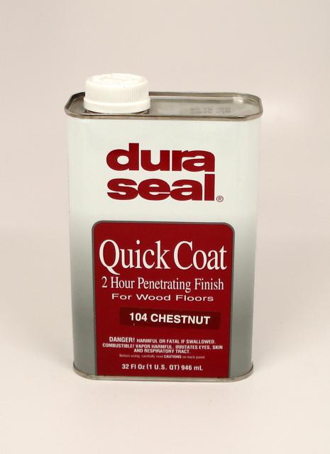DuraSeal® Quick Coat Penetrating Finish is a semi-transparent stain formulated to seal, color and provide exceptional durability when used on bare wood and masonry surfaces. This rich blend of oil and resin gives hardwood floors a soft, satiny sheen. Its unique formulation provides a surface that can be topcoated in two hours. DuraSeal® Quick Coat Penetrating Finish is available in existing DuraSeal® colors as well as many Certified Minwax® colors. It can be used with or without a finish coat, and is compatible with all DuraSeal® water-borne and oil-modified finish systems.