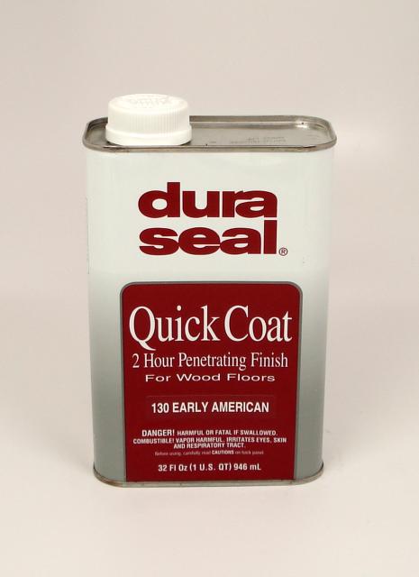 DuraSeal® Quick Coat Penetrating Finish is a semi-transparent stain formulated to seal, color and provide exceptional durability when used on bare wood and masonry surfaces. This rich blend of oil and resin gives hardwood floors a soft, satiny sheen. Its unique formulation provides a surface that can be topcoated in two hours. DuraSeal® Quick Coat Penetrating Finish is available in existing DuraSeal® colors as well as many Certified Minwax® colors. It can be used with or without a finish coat, and is compatible with all DuraSeal® water-borne and oil-modified finish systems.