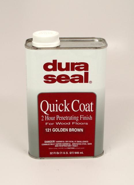 DuraSeal® Quick Coat Penetrating Finish is a semi-transparent stain formulated to seal, color and provide exceptional durability when used on bare wood and masonry surfaces. This rich blend of oil and resin gives hardwood floors a soft, satiny sheen. Its unique formulation provides a surface that can be topcoated in two hours. DuraSeal® Quick Coat Penetrating Finish is available in existing DuraSeal® colors as well as many Certified Minwax® colors. It can be used with or without a finish coat, and is compatible with all DuraSeal® water-borne and oil-modified finish systems.
