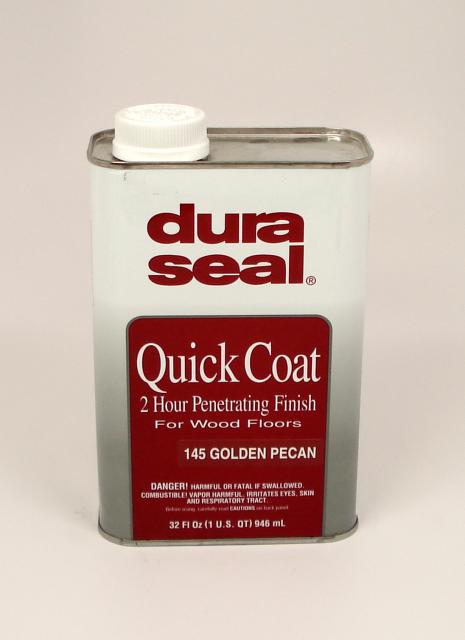 DuraSeal® Quick Coat Penetrating Finish is a semi-transparent stain formulated to seal, color and provide exceptional durability when used on bare wood and masonry surfaces. This rich blend of oil and resin gives hardwood floors a soft, satiny sheen. Its unique formulation provides a surface that can be topcoated in two hours. DuraSeal® Quick Coat Penetrating Finish is available in existing DuraSeal® colors as well as many Certified Minwax® colors. It can be used with or without a finish coat, and is compatible with all DuraSeal® water-borne and oil-modified finish systems.