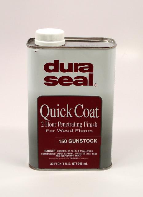DuraSeal® Quick Coat Penetrating Finish is a semi-transparent stain formulated to seal, color and provide exceptional durability when used on bare wood and masonry surfaces. This rich blend of oil and resin gives hardwood floors a soft, satiny sheen. Its unique formulation provides a surface that can be topcoated in two hours. DuraSeal® Quick Coat Penetrating Finish is available in existing DuraSeal® colors as well as many Certified Minwax® colors. It can be used with or without a finish coat, and is compatible with all DuraSeal® water-borne and oil-modified finish systems.
