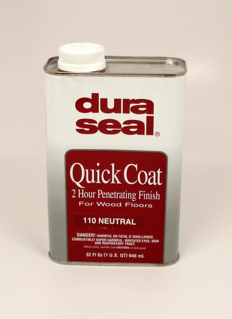 DuraSeal® Quick Coat Penetrating Finish is a semi-transparent stain formulated to seal, color and provide exceptional durability when used on bare wood and masonry surfaces. This rich blend of oil and resin gives hardwood floors a soft, satiny sheen. Its unique formulation provides a surface that can be topcoated in two hours. DuraSeal® Quick Coat Penetrating Finish is available in existing DuraSeal® colors as well as many Certified Minwax® colors. It can be used with or without a finish coat, and is compatible with all DuraSeal® water-borne and oil-modified finish systems.