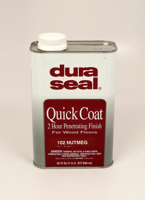 DuraSeal® Quick Coat Penetrating Finish is a semi-transparent stain formulated to seal, color and provide exceptional durability when used on bare wood and masonry surfaces. This rich blend of oil and resin gives hardwood floors a soft, satiny sheen. Its unique formulation provides a surface that can be topcoated in two hours. DuraSeal® Quick Coat Penetrating Finish is available in existing DuraSeal® colors as well as many Certified Minwax® colors. It can be used with or without a finish coat, and is compatible with all DuraSeal® water-borne and oil-modified finish systems.