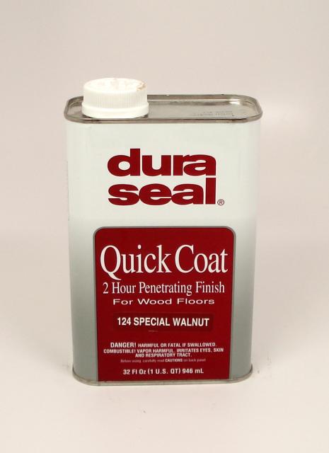 DuraSeal® Quick Coat Penetrating Finish is a semi-transparent stain formulated to seal, color and provide exceptional durability when used on bare wood and masonry surfaces. This rich blend of oil and resin gives hardwood floors a soft, satiny sheen. Its unique formulation provides a surface that can be topcoated in two hours. DuraSeal® Quick Coat Penetrating Finish is available in existing DuraSeal® colors as well as many Certified Minwax® colors. It can be used with or without a finish coat, and is compatible with all DuraSeal® water-borne and oil-modified finish systems.