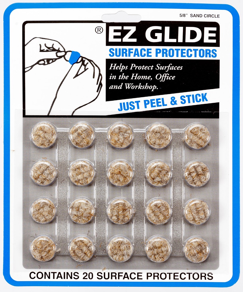 EZ GLIDES are designed to protect surfaces. Applied to the legs of furniture, they protect floor surfaces. Installed under office equipment they protect desk and counter tops from scratching. Applied to pottery, lamps and ash trays they allow movement back and forth without scratching. EZ GLIDES have thousands of uses not listed. They can be cut with scissors to fit any size leg or pedestal. Heavy duty Olefin Fiber construction makes EZ GLIDES water resistant for extra durability.