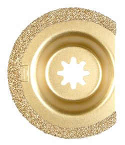 This Carbide Blade is excellent for general degrouting of ceramic tile joints. The blades generate no airborne dust and are "tile safe" since the oscillation action does not cause the blade to climb out of the tile joint like other tools. The blade is bell shaped to allow flush degrouting. The No. 528-118 blade also has a 3/4-moon shape to allow working deeper into corners. The blade is 2-1/2" diameter and cut up to 1/2" deep. Cutting width is about 3/32". Not intended for epoxy grout removal or for cutting ceramic tile or stone.