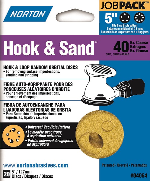 Norton Hook & Sand discs, 5" 6 & 8 vac hole, P40
