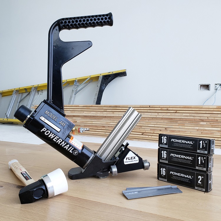 When comfort and control are a priority, you can depend on the Powernail Model 445 Power Roller. Outfitted with the new Tri-Glide Power Roller, this cleat nailer now delivers speed, comfort and accuracy while protecting delicate edges and finishes. Power meets control with the all new model 445 Power Roller.