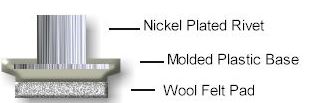 Felt, plastic and steel are permanently combined to give you our most popular glide for wooden furniture. No need for drilling or glueing. Install easily with the tap of a hammer into end grain. The very thin, tubular, nickel-plated rivet holds fast, is safe for furniture and won’t split wooden chair legs. Recommended for wood, vinyl, tile, stone, terrazzo and marble flooring.