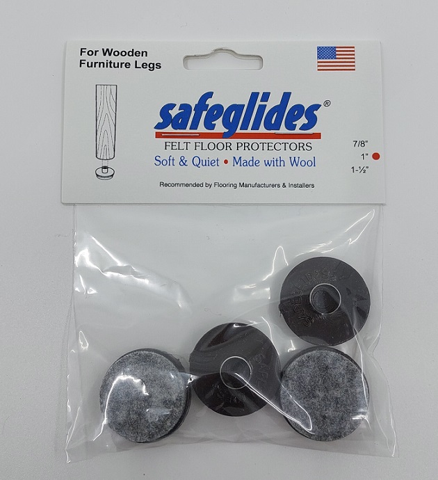 Safeglides® felt floor protectors buffer furniture from scratching or marring floors. They are simple to install, won’t loosen or slip and are also available in 7/8" & 1-1/2".